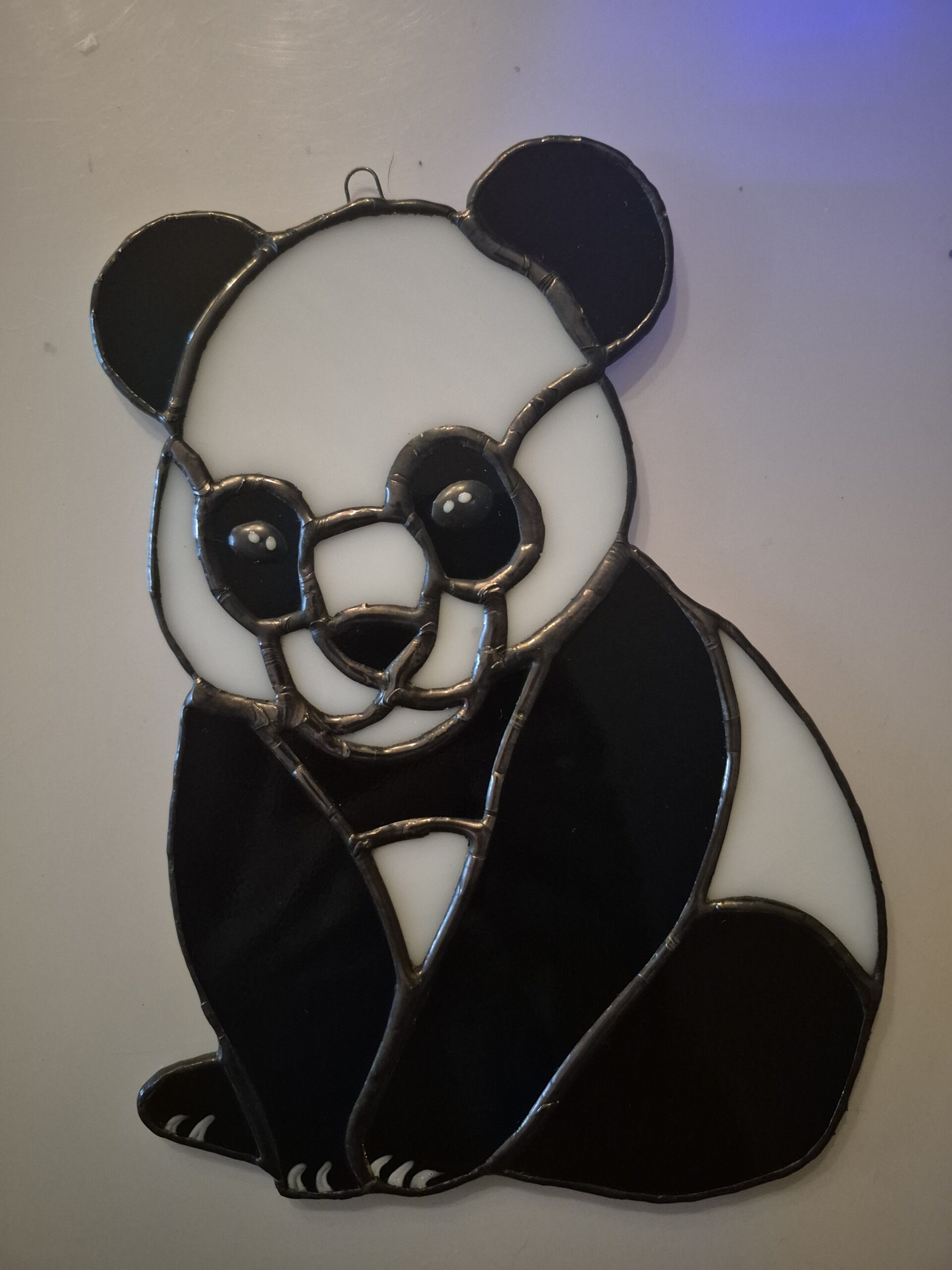 Our sweet panda symbolizes peace, friendship and goodwill coupled with the spirituality of Yin and Yan balance, luck and patience. This particular little black and white fellow includes glass painted nails and eyes. A panda suncatcher will add a bit of whimsy and fun to any child’s room or nursery.